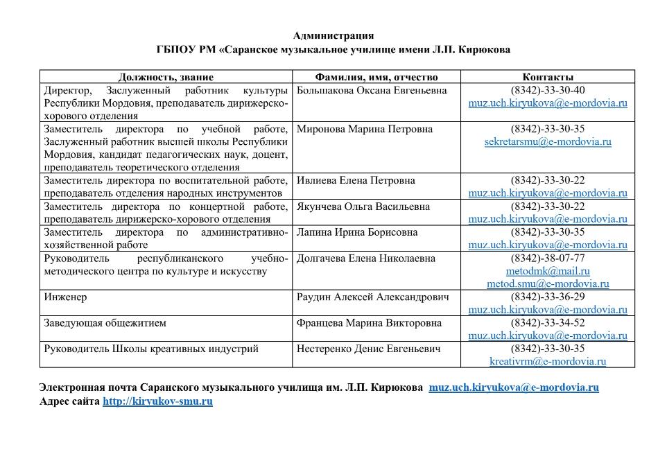 Директор. Заслуженный работник культуры Республики Мордовия, преподаватель дирижерско-хорового отделения
