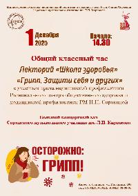 Общий классный час. Лекторий "Школа здоровья". "Грипп: защити себя и других".