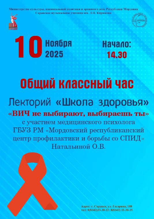 Общий классный час Лекторий "Школа здоровья". "ВИЧ не выбирают, выбираешь ты"