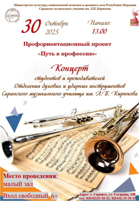 Профориентационный проект "Путь в профессию". Концерт студентов и преподавателей Отделения духовых инструментов