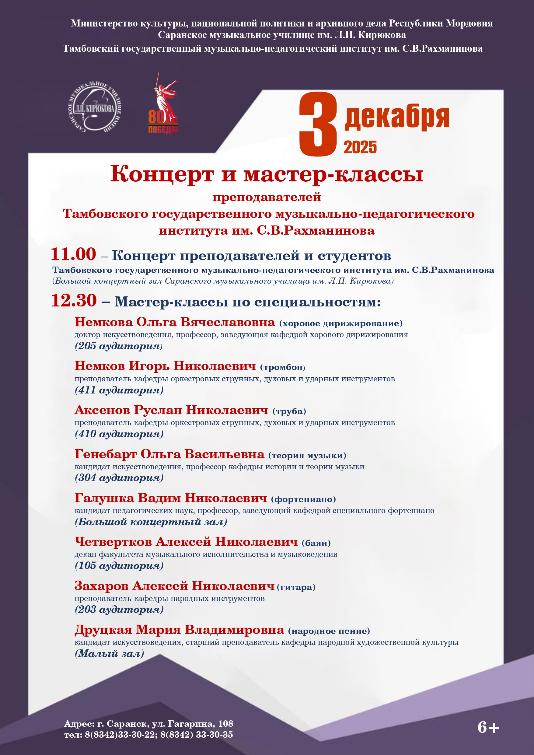 Концерт и мастер-классы преподавателей Тамбовского государственного музыкально-педагогического института им. С.В.Рахманинова
